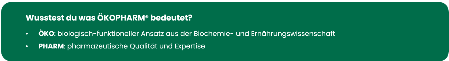 Seit der Gründung versteht sich ÖKOPHARM® als Anbieter gezielter Wirkkombinationen zur Unterstützung der physiologischen Prozesse.