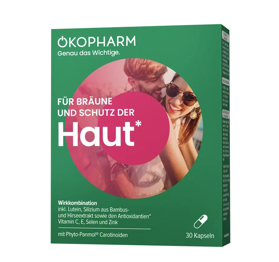 Zur Erhaltung einer natürlichen Basis-Bräune können die ÖKOPHARM® Haut* Kapseln das ganze Jahr über bedenkenlos eingenommen werden.